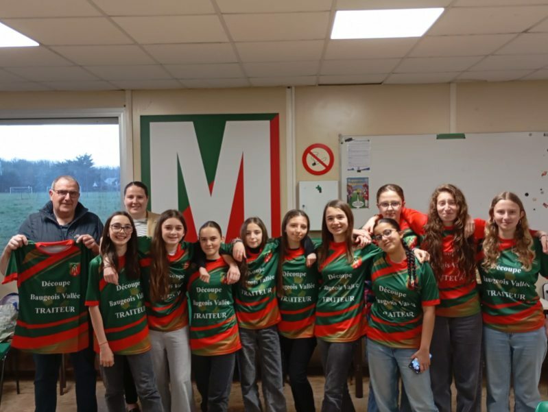 Le vendredi 28 mars 2025 avait lieu la remise du nouveau jeu de maillots des U15F, offert par Franck Charpentier et son entreprise Découpe Baugeois Vallée.